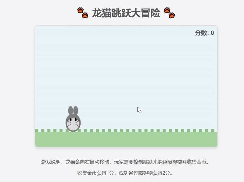 在编程场景,我们让LongCat-Flash打造一个以龙猫为主题的小游戏。模型能按照要求在单一HTML网页中实现游戏功能,但是游戏机制设计得不合理,导致可玩性一般。